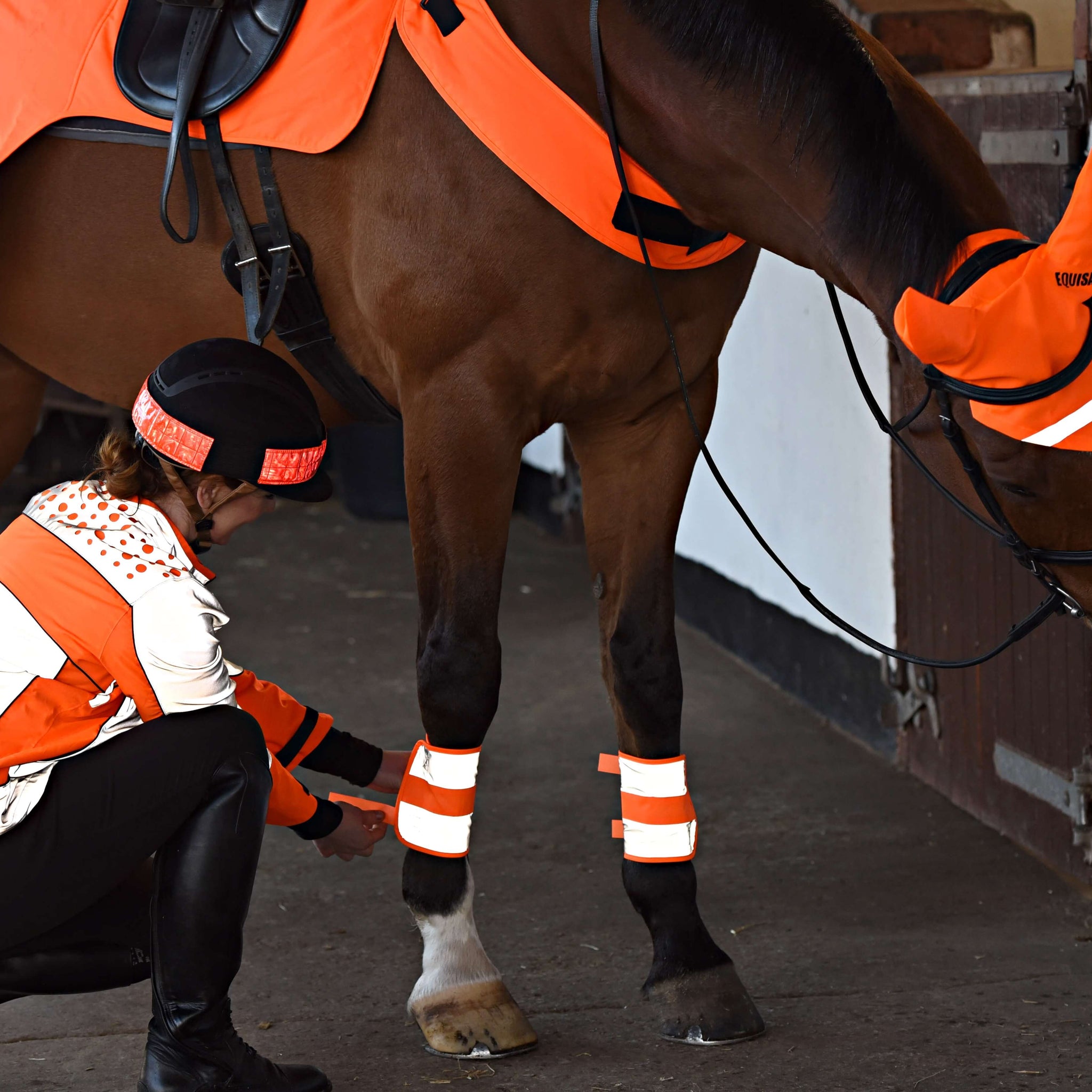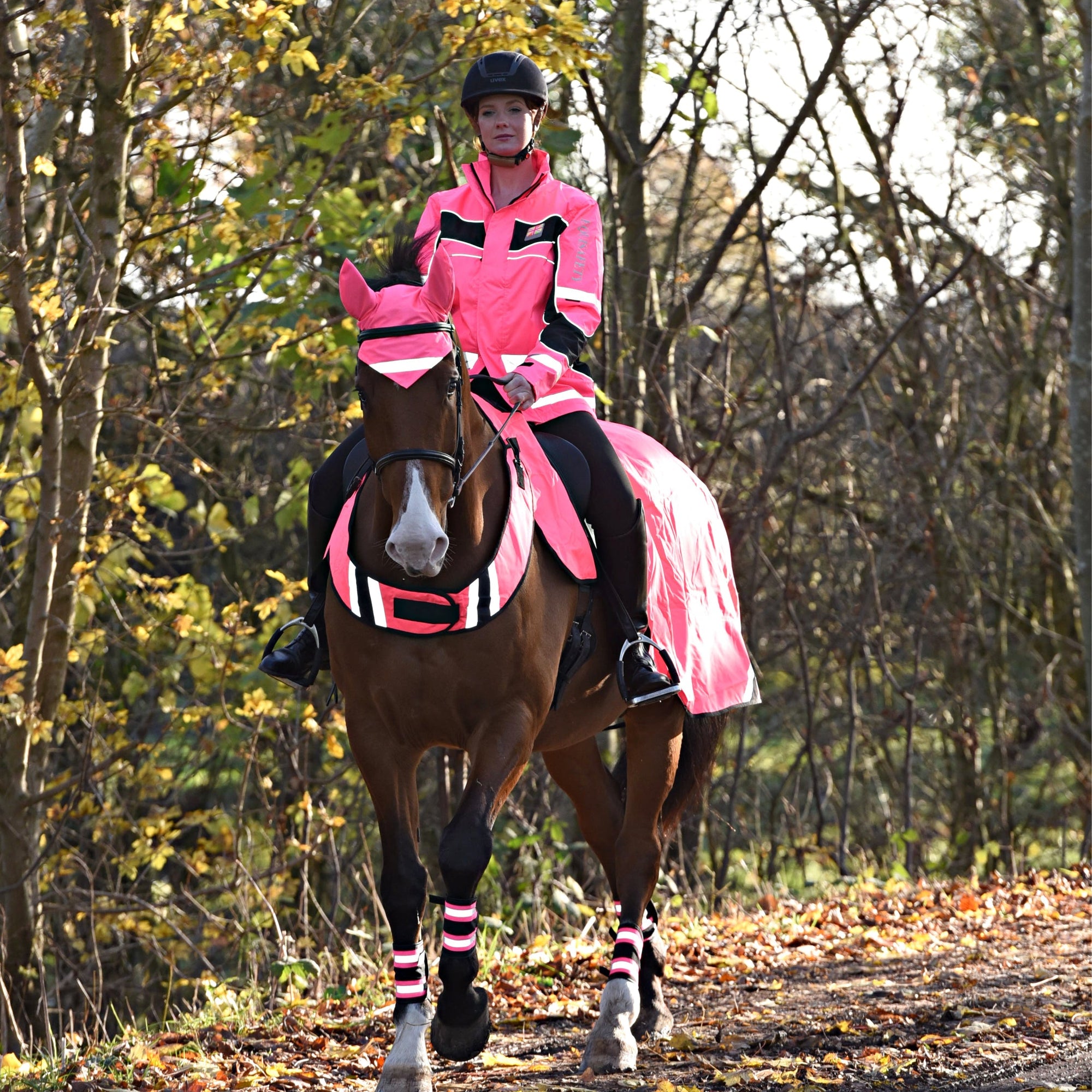 Horse high-vis accessories are essential for road safety — they make horses more visible from every angle, helping drivers recognise and react sooner. The bright, reflective designs catch the eye, make the horse appear larger and more noticeable, and stand out as something unusual on the road — all vital details that can prevent accidents and save lives.