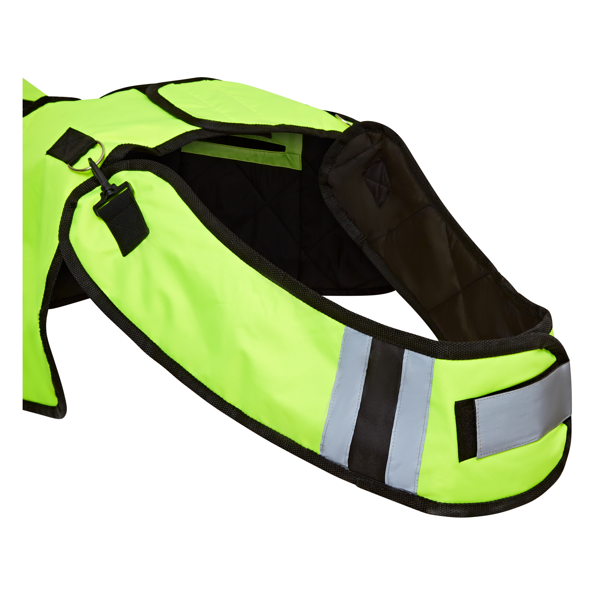 - High visibility and reflective, 100% waterproof, breathable and windproof. We have designed the rug so that it is light weight and does not over heat the horse. It is lined with a wicking fabric. The rug is lined with quilting so has a soft thin padding.