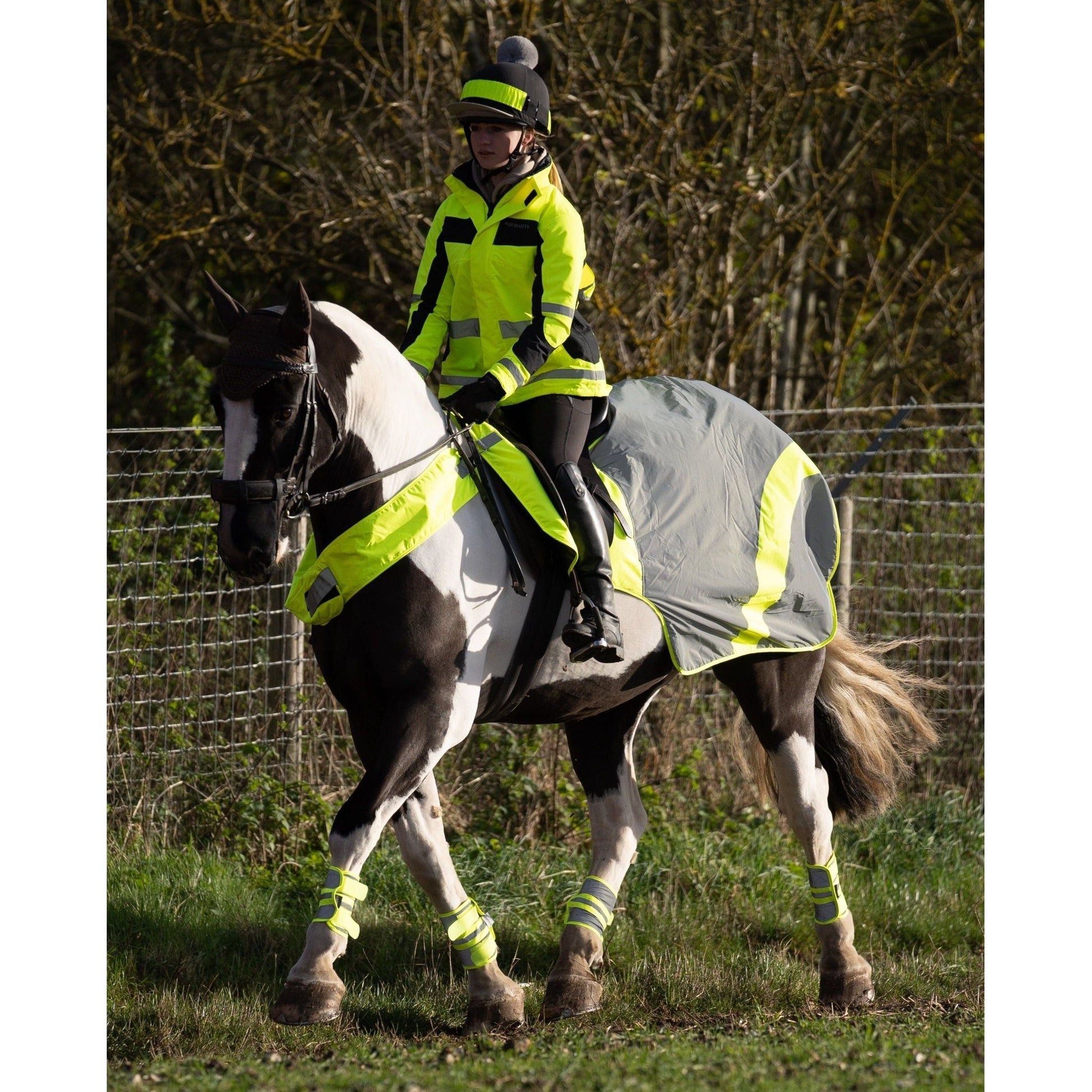 Advanced reflective protection for you and your horse. Using EN20471 technically advanced reflective, soft touch fabric this lightweight and 100% waterproof horse rug has taped seams. Equisafety's vapour technology gives maximum breathability. Please be aware the fabric is NOT rip-stop but is made from billions of tiny reflective balls. The rug is susceptible to brambles, barbed wire and tree branches (please avoid these scenarios).